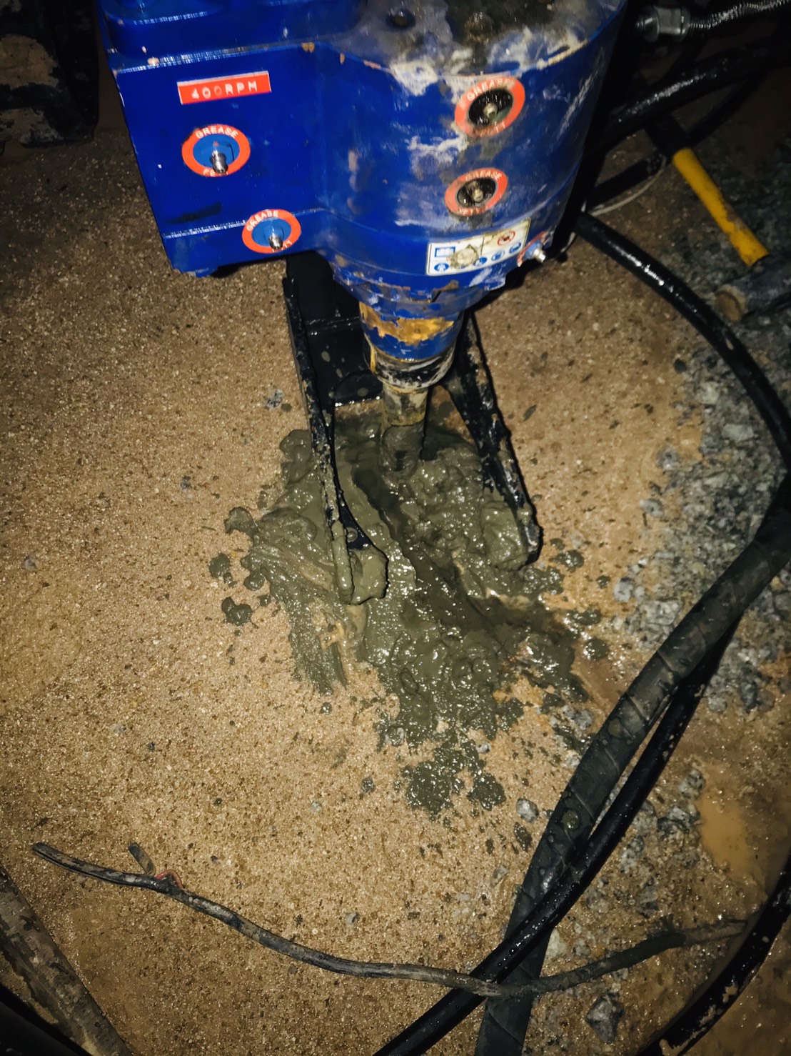 - 고압으로 심층혼합처리기 선단에 압송